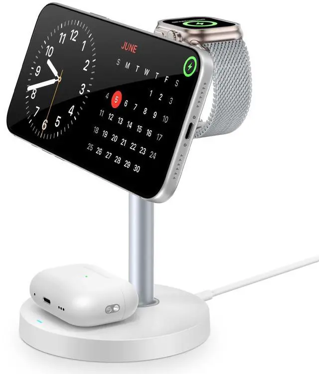 Yep! Built-in Magnetic snaps your iPhone or Apple Watch right into place – just drop it on one-handed and you're good to go.