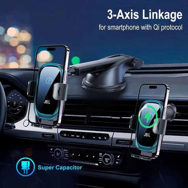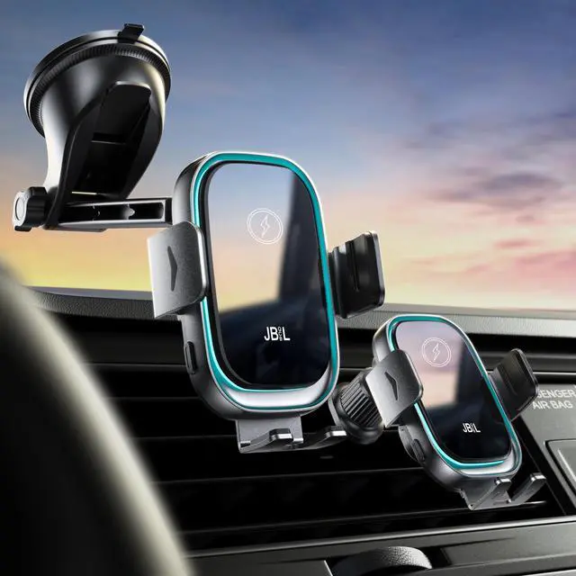 3-in-1 Car Phone Holder Simplify your life with our versatile wireless charger and car cell phone holder and car phone mount for a safe drive experience. JBQCBL wireless charger has a sturdy suction cup and stable vent clip, suitable for windshields, dashboards, and air vents, and is compatible with most cars SUVPickups and taxis to meet your different charging needs
