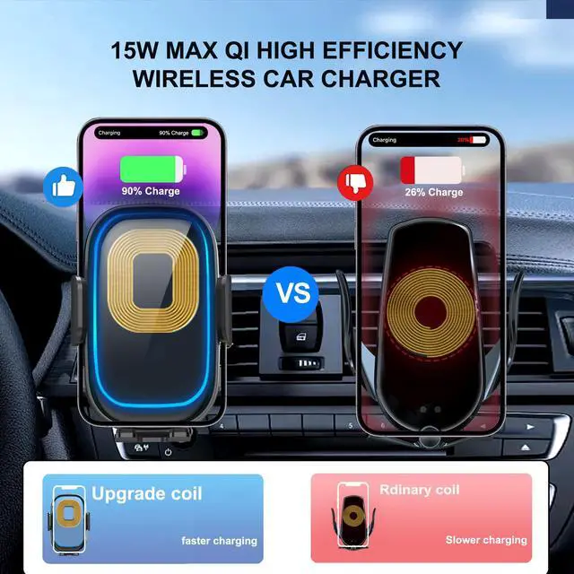 15W QI Fast Wireless Car ChargerQi fast wireless charger ensures that your Qi device charges intelligently and safely at the fastest speed possible. The max 15W fast wireless car charger holder is suitable for iPhone and Android, supporting iPhone Air/17/16/15/14/13/12 Pro Max/11/XR/XS; Galaxy S22+/S22/S21+/S21/S20/Note 20/Note 20 Ultra/Note 10/Note 10 Plus/Note 5; Google phone/LG V60/V50/V40/V30+, etc. Note: iPhone 12 Mini is not supported