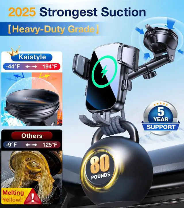 1.Super Powerful Suctiong Cup: The phone holder mount comes with dual locking suction cups made of heat-resistant TPU material that provides strong suction on smooth surfaces and stays stable in all conditions.