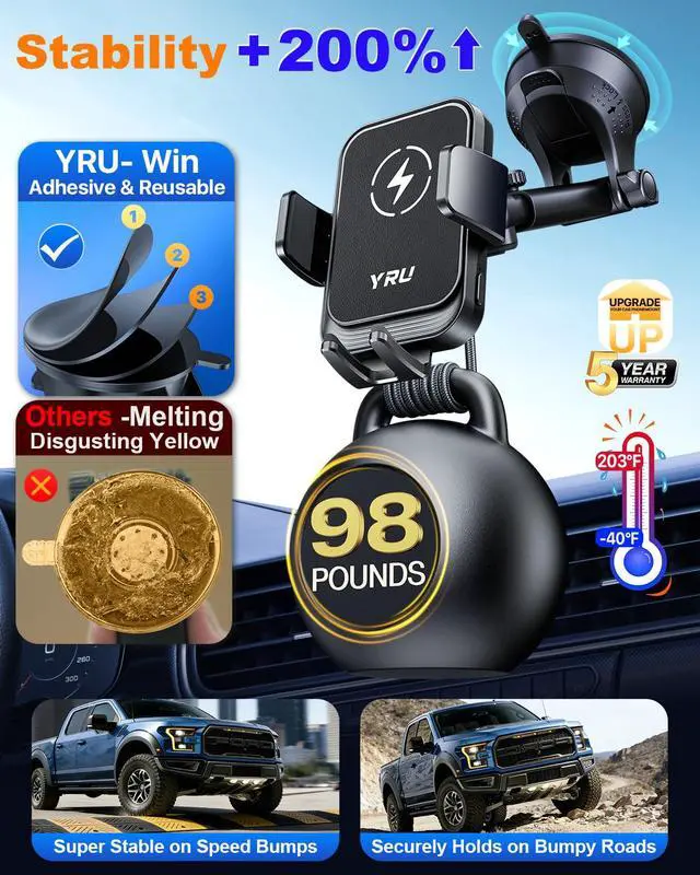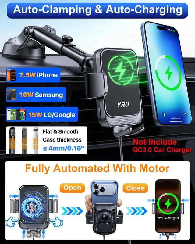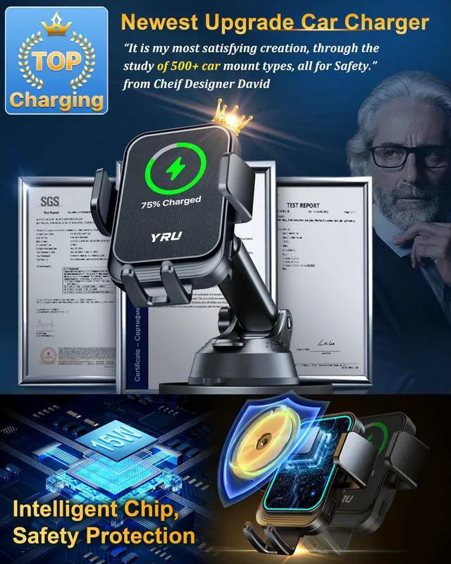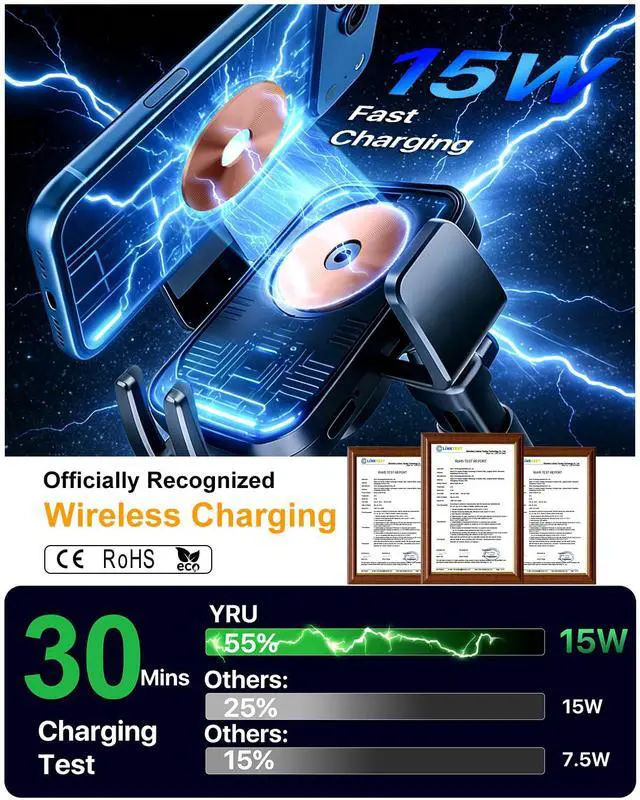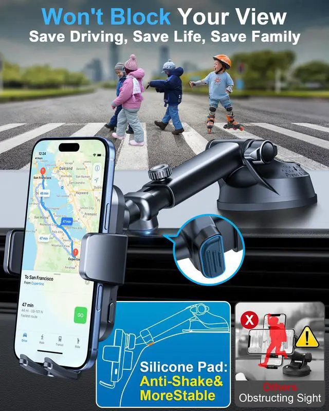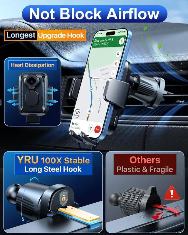 | Additional Features | [15W Wireless Charging & Patented One-Hand Auto-Clamping], [Dual Installation & 98LBS Super Stable (360° Rotatable Suction Cup)], [Vent Steel Hook], [Washable & Reusable & Durable Sucker Safe Design], |