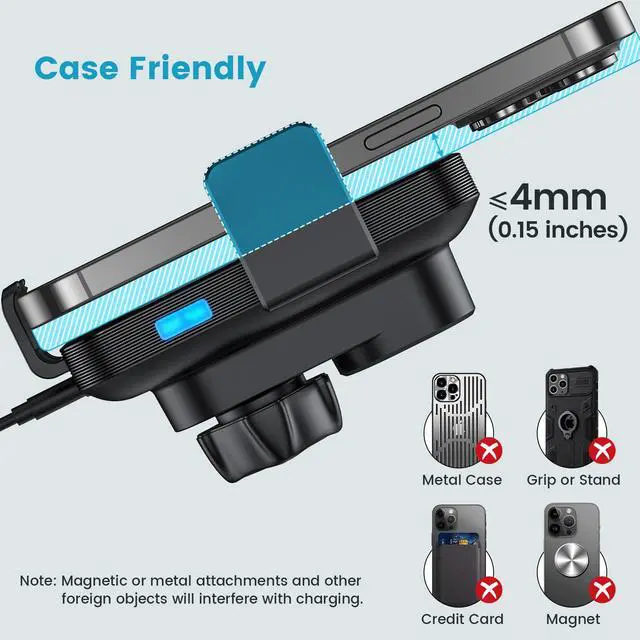 - Avoid using excessively thick mobile phone cases (=4mm) or those containing magnetic or metal elements.