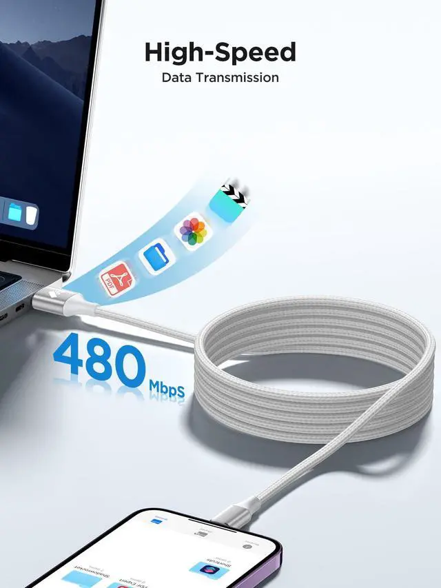 iPhone Fast Charging Cable: the newly upgraded original connector. Aioneus iPhone Charger Cord output power up to 5V 3A, which is ensured by high-speed safe charging, and supports data transfer speed can reach 40~60MB/S (480Mbps).This is faster than most standard cable.