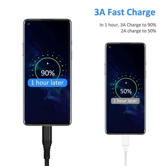 PORTABLE LENGTH: 3 Foot long for charging your phone with power bank or power station; anti-tangling, easy to carry. This USB C cable can bear 10000+ bending test, and more durable.