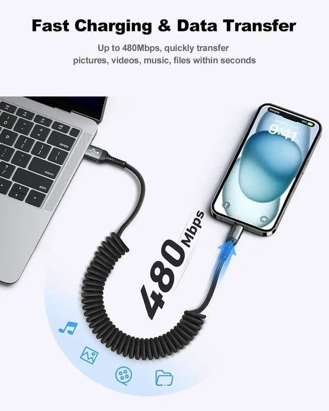 - Upgraded Extra Durable Braided Coiled USBC Cable