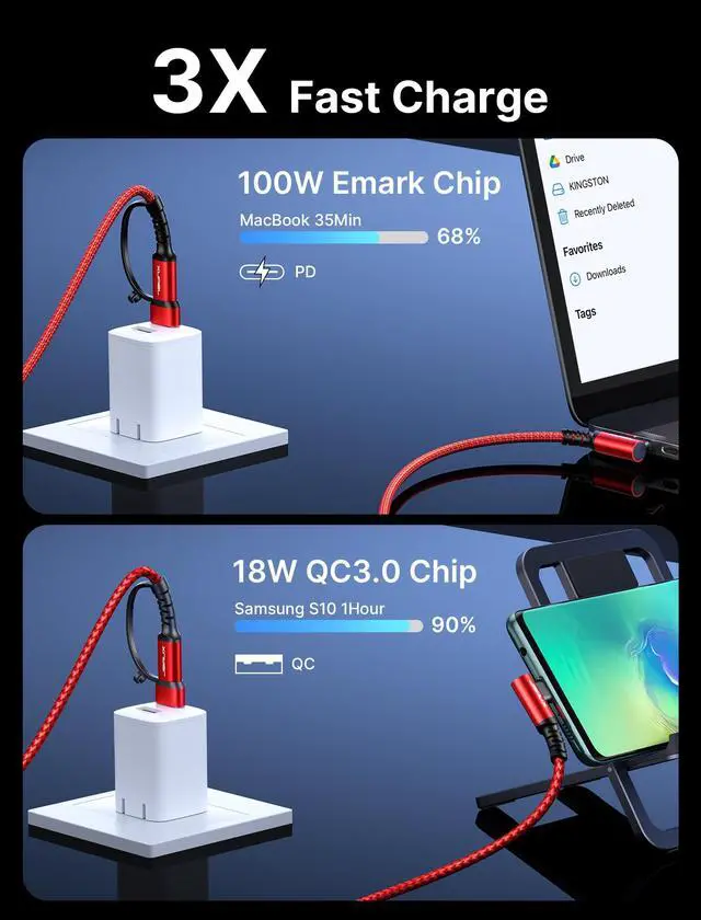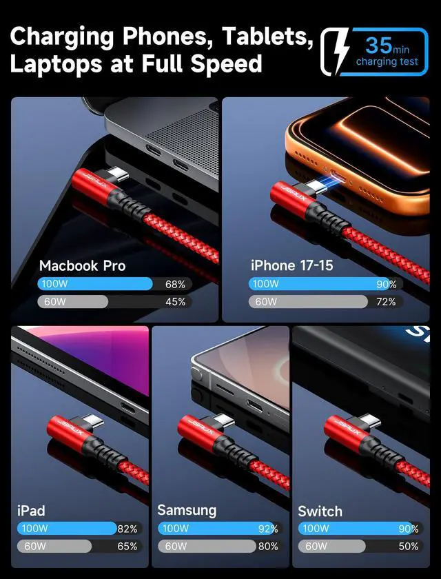 ![Alt view image 6 of 7 - 100W USB C Cable [2-Pack 10FT], Right Angle Fast Charging Cord with USB A to C Adapter for iPhone Air/iPhone 17/ iPhone 17 Pro/iPhone 17 Pro Max, iPhone 16/15, Samsung, MacBook, iPad - Red](https://c1.neweggimages.com/productimage/nb640/C6EHD2604220GDR2M90.jpg)