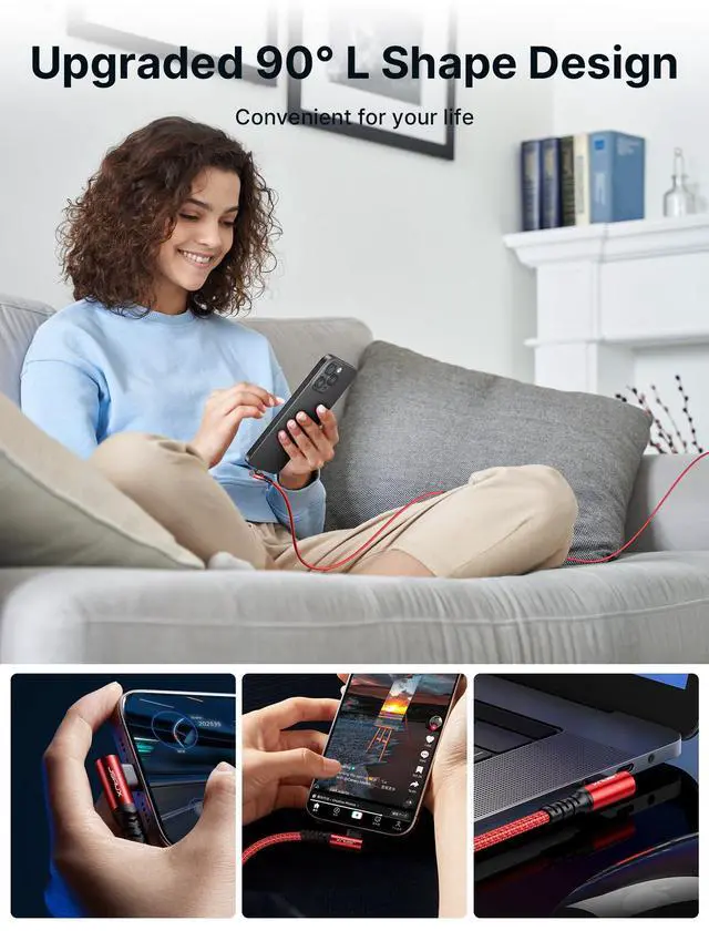 ![Alt view image 5 of 7 - 100W USB C Cable [2-Pack 10FT], Right Angle Fast Charging Cord with USB A to C Adapter for iPhone Air/iPhone 17/ iPhone 17 Pro/iPhone 17 Pro Max, iPhone 16/15, Samsung, MacBook, iPad - Red](https://c1.neweggimages.com/productimage/nb640/C6EHD2604220GDR0550.jpg)