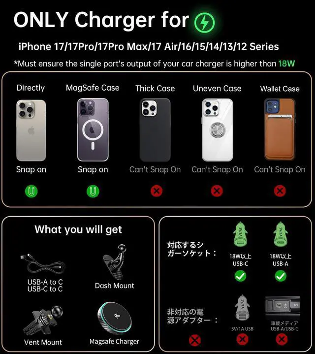 3. NOT for iPhone 12-17 series with NON-Magneitc Case