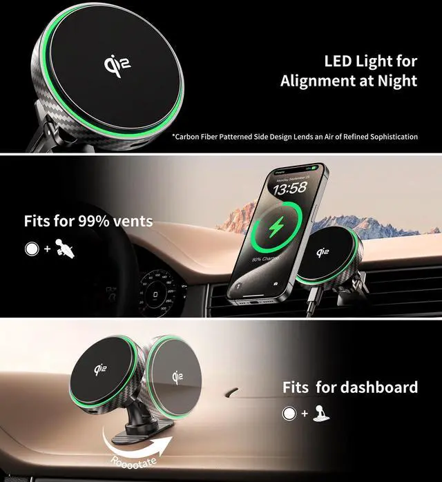 ![Alt view image 4 of 7 - for Magsafe Car Mount Charger 2026 New [Qi2 Certified-15W], 360° Rotatation [Dash & Vent] Wireless Car Charger, for iPhone 17 16 15 14 13 12 Series, for Magnetic iPhone Car Accessories, Black](https://c1.neweggimages.com/productimage/nb640/C2JJD2601230XIXLRC5.jpg)