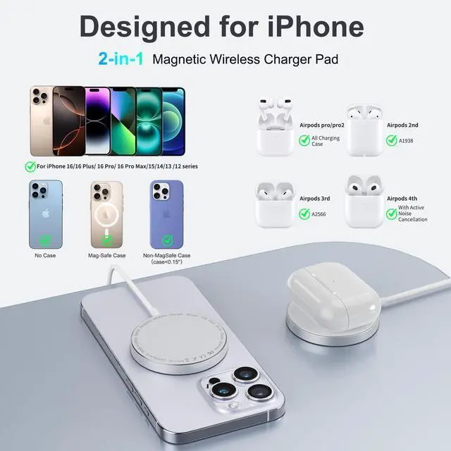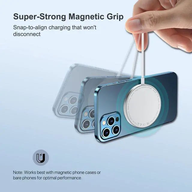 Strong Magnetic Hold & 360° Charging this iphone magnetic charger provides a secure grip, preventing slips or misalignment. Enjoy 360° rotation for flexible charging in portrait or landscape mode. Works best with Mag-Safe cases (not included) for optimal magnetic strength.