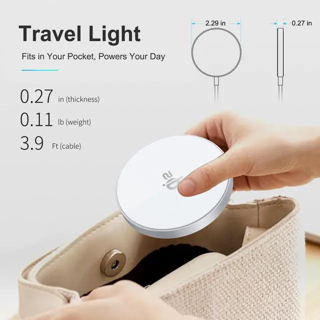 Slim & Portable Design At just 0.23 inches thick, this ultra-thin wireless charging pad is perfect for travel, home or office. The lightweight, compact design fits easily in bags, ensuring on-the-go convenience.