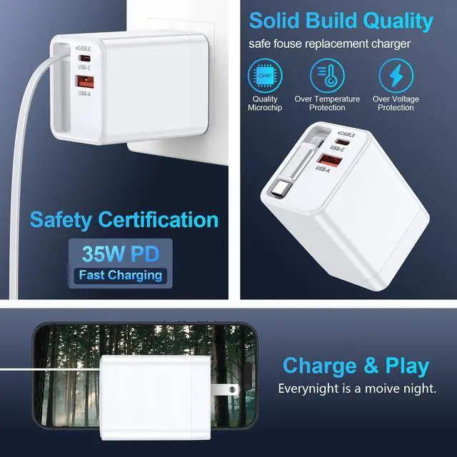 35W Foldable Fast Charger Block PD Fast Charging Retractable USB C Charger with Type-C Cable