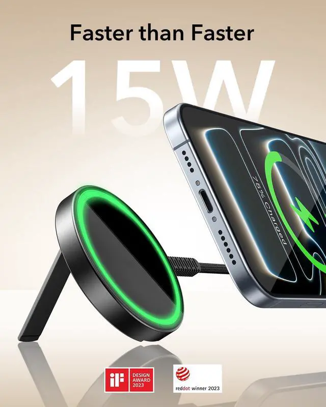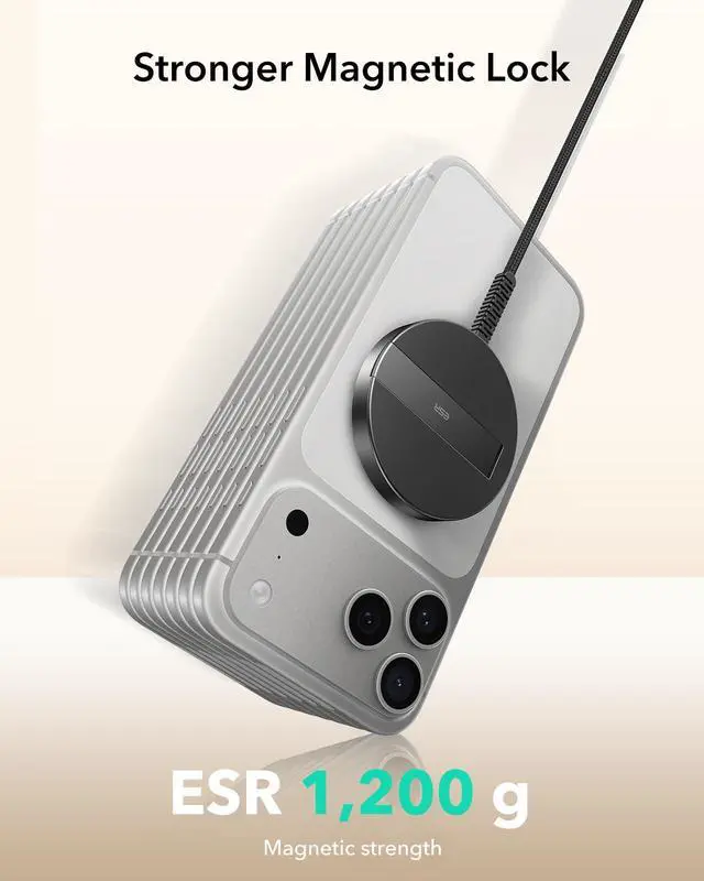 Strong Magnetic Lock: Featuring powerful magnets with a holding strength of 1,200g, the charger securely attaches to compatible devices with magnetic cases for precise and hassle-free charging.