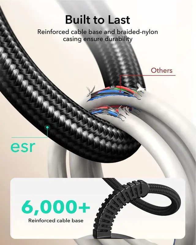 Durable Construction: The charger features a reinforced base and braided nylon cable tested to withstand over 6,000 bends, ensuring long-lasting performance.
