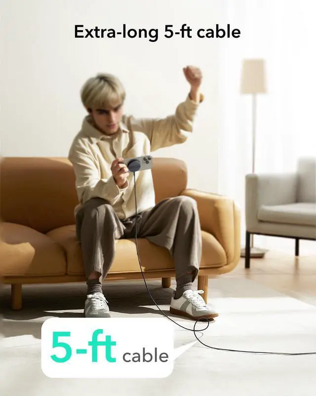 Convenient Design: The 5-foot (1.5m) cable provides ample freedom of movement while charging, and the charger is compatible with USB Type-C connectors.