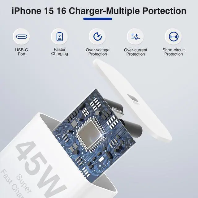 - iPhone charger 45 watt fast charging is equipped with an extra longer 10FT type c to type c iphone 15 16 17 charger cable cord, long cable charging distance and fast charging.