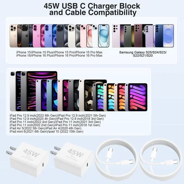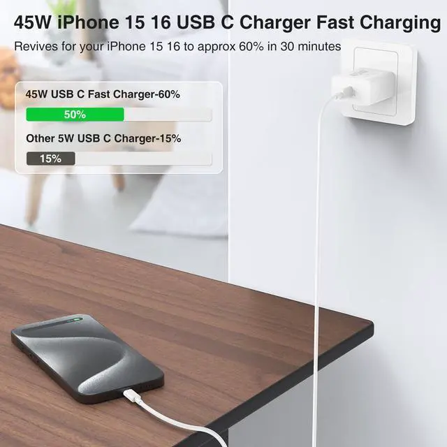 - The usb c fast charger with fast charging cord type c 10ft charging your iphone 15 16 17 or ipad pro up to approximate 50% in just approximate 30 minutes, 3X faster than standard usb c wall charger.