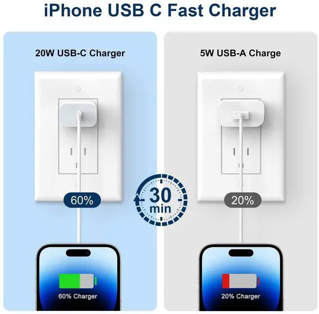 20W USB-C Fast Charger Offers fast and efficient charging up to 3X faster than a 5W charger.