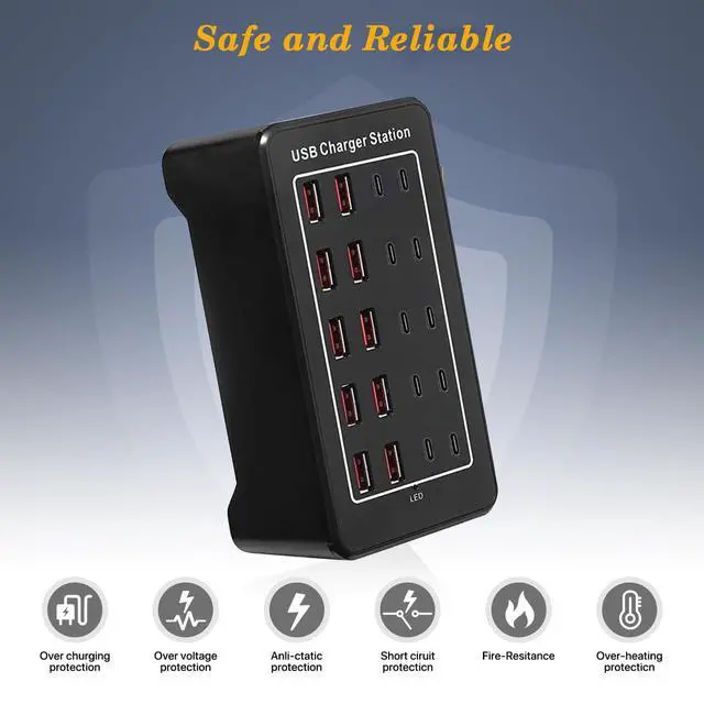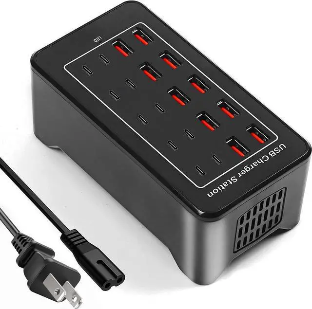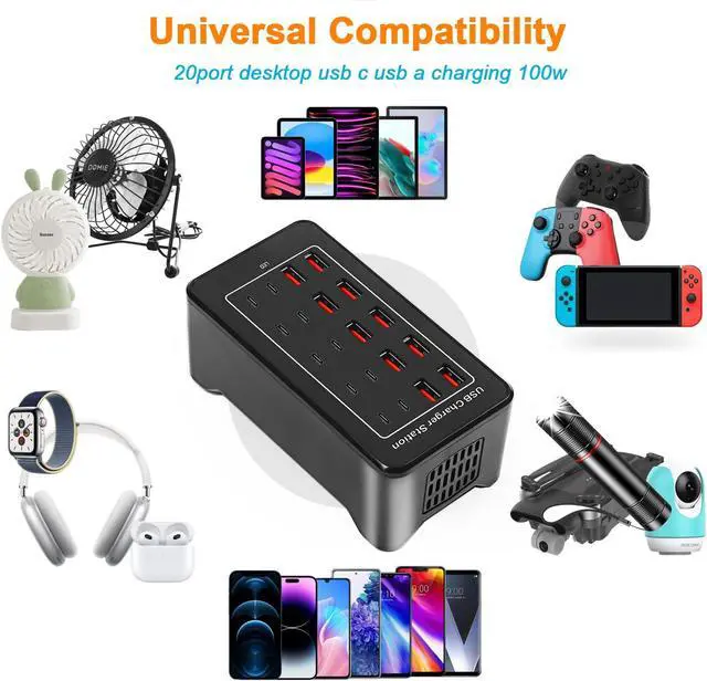 20 port usb c charger block with 10 port type c charger and 10 port type a charger.USB C Charger Compatible with Tablets, Smartphone, Smartwatch, USB Fan, Magsfe charger, wireless charger station, power bank, switch airpods, MP3, Speaker,humidifier.Higher efficiency, Safer charging.