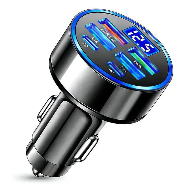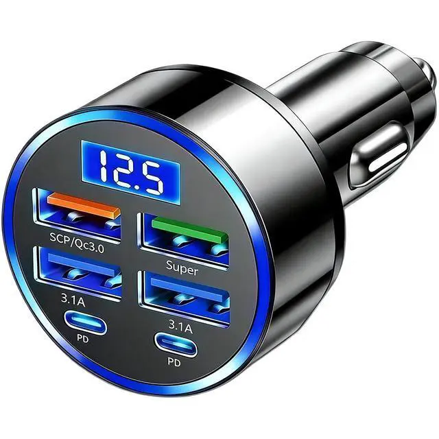 QC3.0 + Super + 2PD Fast Charging: Constructed from ABS+PC material, this car charger features a QC3.0 port + PD port. This 6-port car charger is your perfect travel companion.