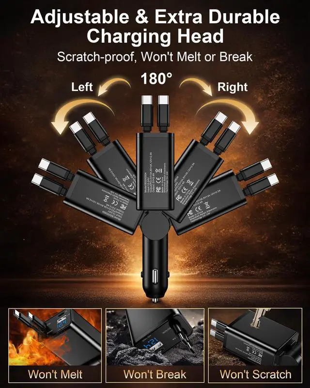 5. Engineered for Safety & Reliability: Features a 9-point protection system, fire-resistant materials, spring-reinforced connectors rated for 10,000+ retractions, and vehicle-safe design. FCC/RoHS/CE certified.