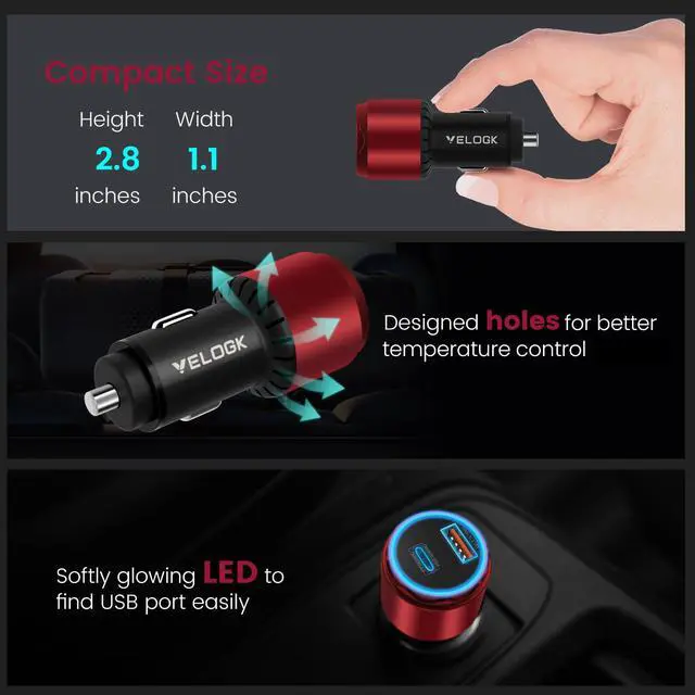- This dual port cigarette lighter usb c charger has solid construction and anti-scratch housing for long-time use.