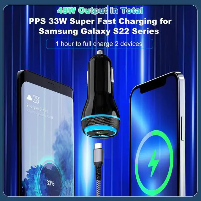 ![Main image of 2-Pack PD Fast Car Charger for iPhone 17/16/15, [USB C PD/PPS & USB A QC3.0] 45W Super Fast Car Cigarette Lighter Adapter Compatible for Samsung S25/S24/S23 with 4FT Type C Cord](https://c1.neweggimages.com/productimage/nb640/C56DD2604250Z1LZ154.jpg)