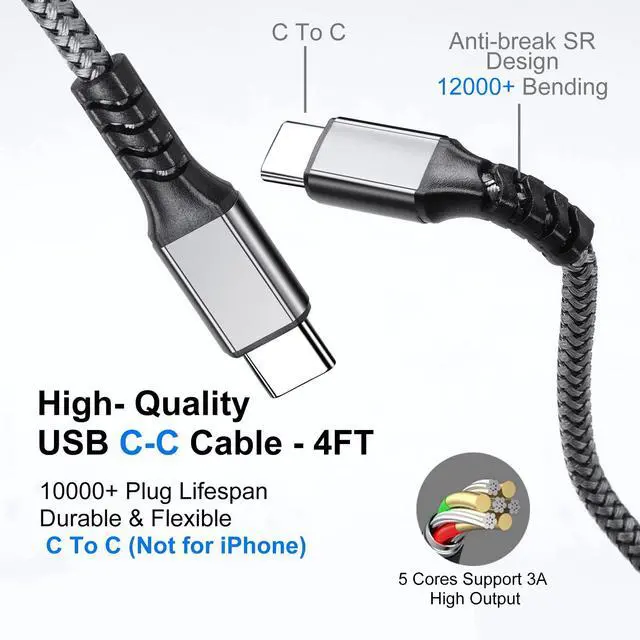 Attached 1pc 4FT high quality USB C-C Cable, which support 12000+ Bending and 10000+ plug lifespan.