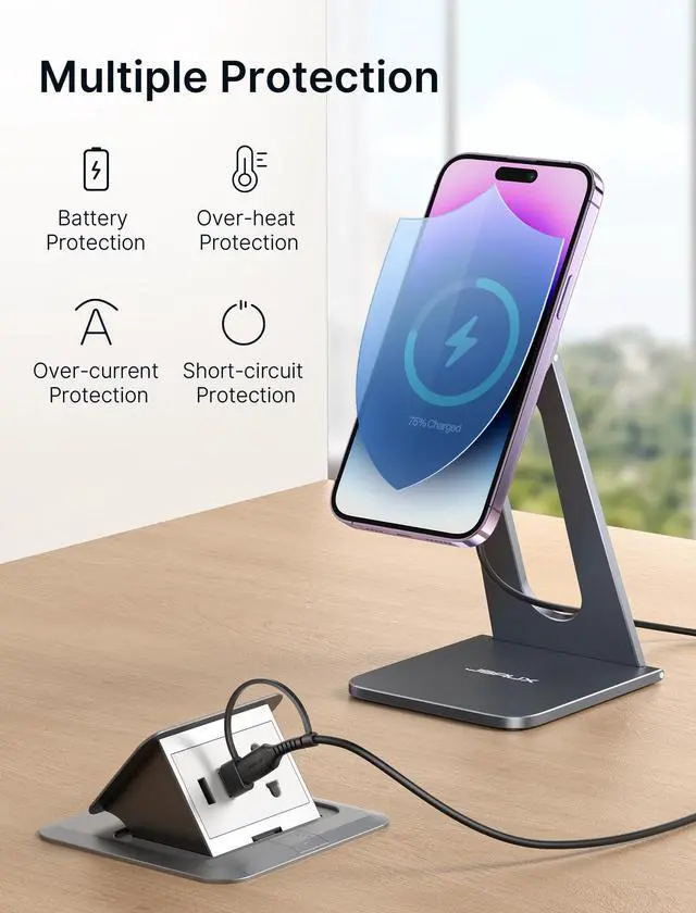 - Proper Ventilation Matters – Always place the charger on a hard, flat, and heat-resistant surface like wood, metal, or glass. Never use on soft surfaces (e.g., beds, sofas) that trap heat and raise device temperature.