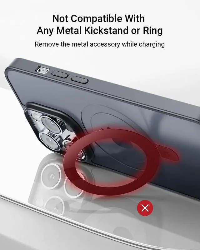 Please do not use any phone case which contains metal objectives or ring stand.