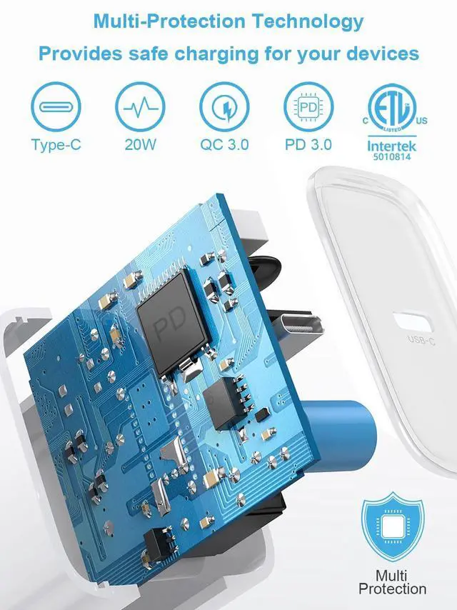 The updated smart iQ chip in the USB-C power adapter protect your phone and pad from overcurrent, over-voltage, short-circuit and overheating.