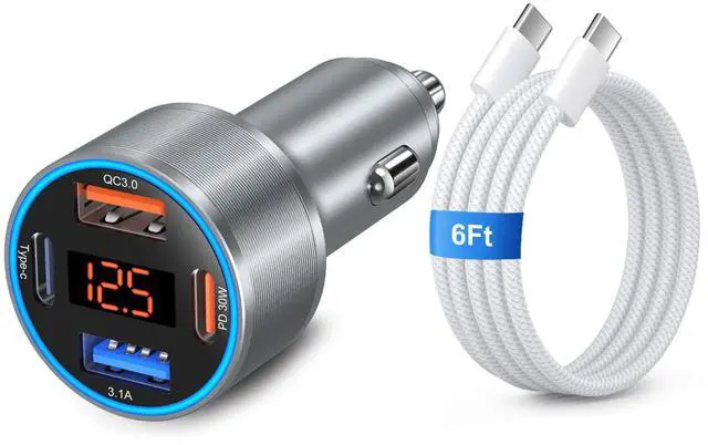 Car Charger Adapters with Fast USB-C Cables Set: 65W Dual 12V to USB C & USB A Car Charger with 60W 3A Fast Charging USB C to USB-C cables, what a great combination those families with multiple vehicles. 6 feet long is the great length for using in the car to use in the front seats. With solid usb-c connectors and 3A fast charging, the usb-c cord works with a wide range of devices, from iPhones to Samsung Galaxy Google Pixels and other android phones.
