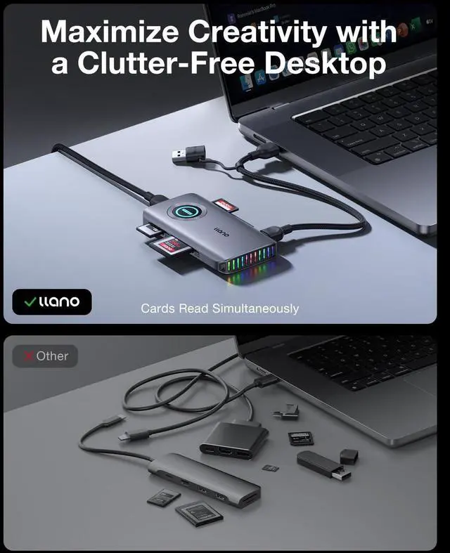 This llano card reader supports CFexpress Type A,CFexpress Type B,UHS-II SD cards,Micro SD cards