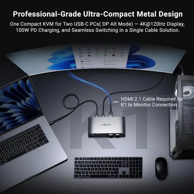 Yes, MINIX K1 is a true USB-C KVM switch. It supports video output, peripheral sharing, and system switching between two computers/laptops using one monitor