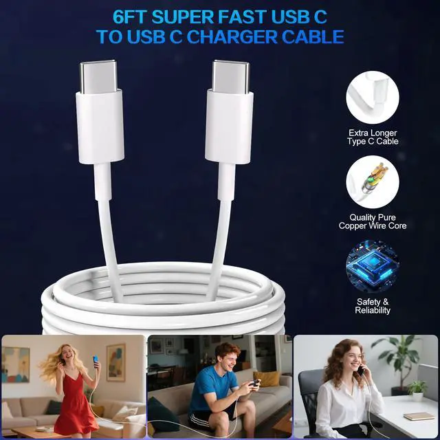 6FT Long USB C to USB C Charger Fast Charging Cable Cord
