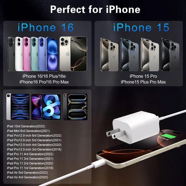 The smart chip inside iPhone 17/16/15 Charger Fast Charging monitors the Charging status in real time,