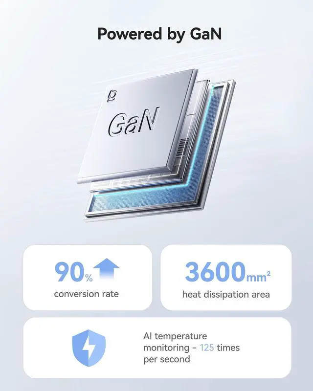 Powered by GaN: The usb c charging block featuring solid build quality with GaN technology, the versatile charger provides low-temperature fast charging with an up to 90% conversion rate. It automatically monitors temperature xx times per second to keep devices cool as much as possible, so as to safeguard your devices' batteries.
