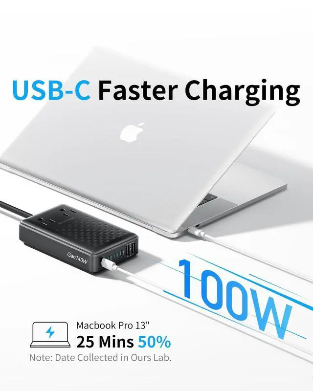 • 140W latest GaN III Charging technologyNewly designed USB charger, total power 140W, multi-port, using 2025 GaN III charging technology, providing higher energy efficiency, anti-radiation ability and upgraded heat dissipation, higher safety rate, more stable power supply, protect charging equipment.