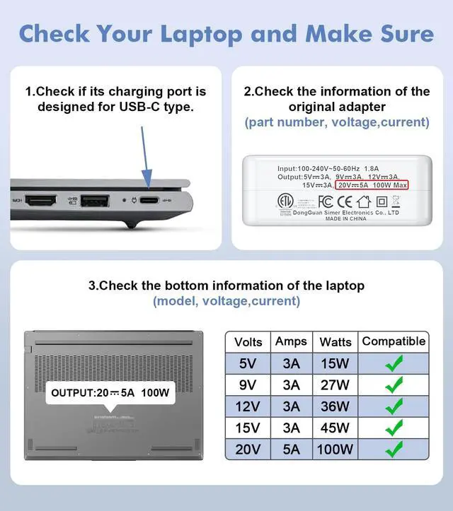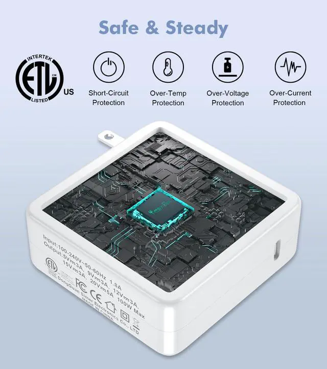 Compatible with PD 100W/90W/75W/65W/60W/50W/45W/36W/27W/15W USB C Devices