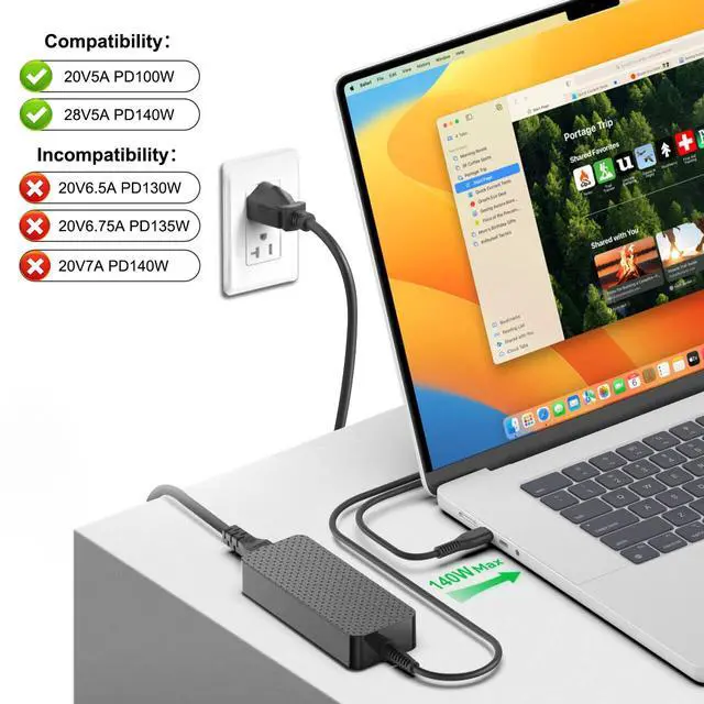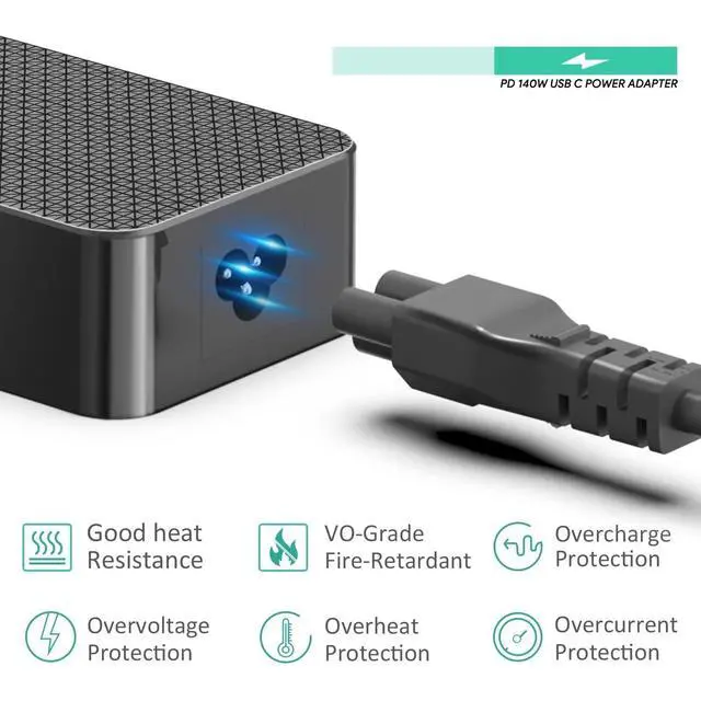 Power : 140W Max (replacement for 140w 110W 100w 96w 95w 90w 87w 70w 65w 61w 60w 45w 30w 27w usb-c power adapter )