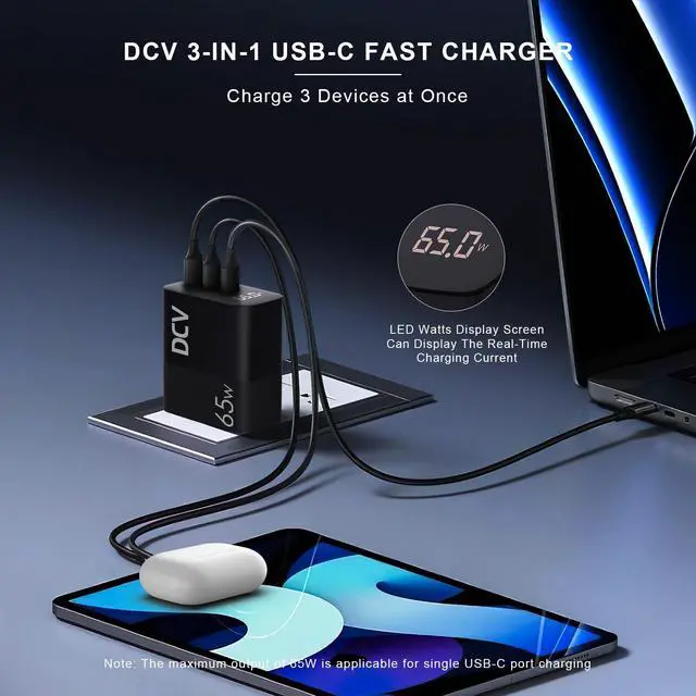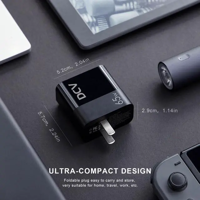 GaN PD 3.0 Technology: The DCV USB C charger block uses advanced GaN PD 3.0 technology, the size is 50% smaller than the original 65W wall charger but more powerful. integrated over-voltage, overheating, and short-circuit protection to keep connected devices safe.