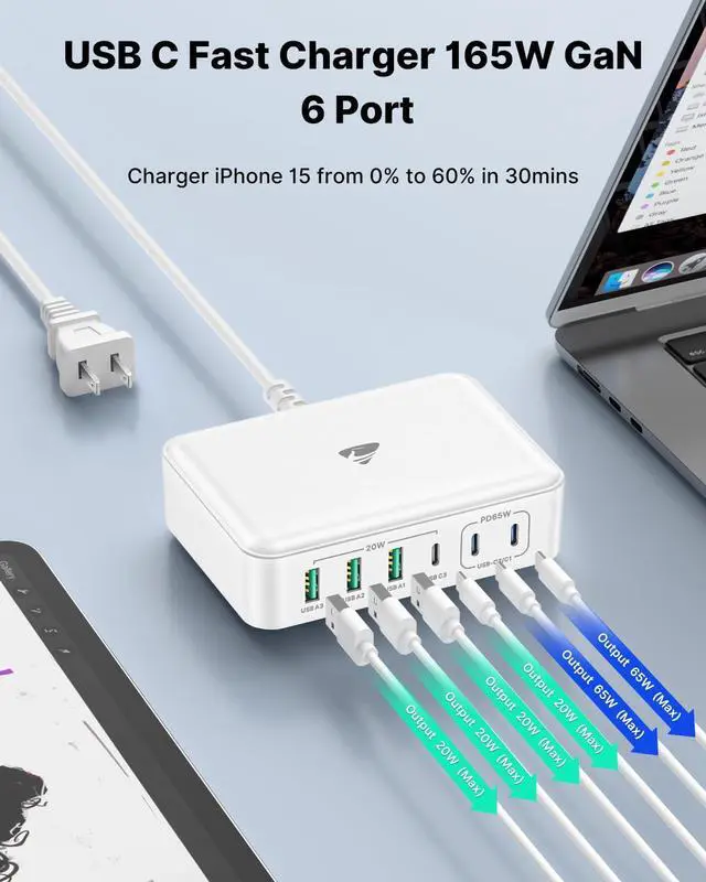 Multiport 165W Fast USBC Wall Charger- Perfect for every daily use