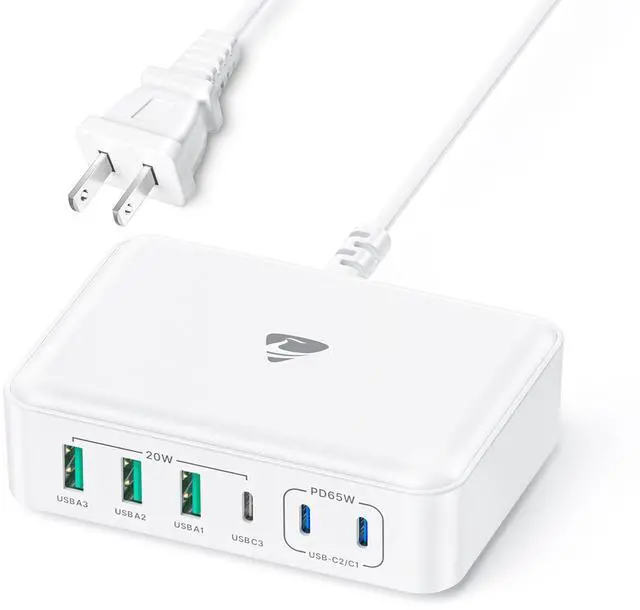 | 6 Ports USB C Charger Block | 165W 6-Port USB-C Ladegerät (Weiß) (65W USB-C x2 + 20W USB-C x 1 + 20W USB-A x3) |