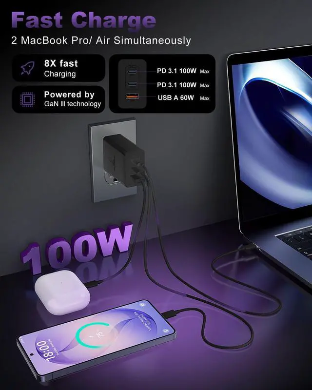 ![Alt view image 4 of 7 - USB C Super Fast Phone Charger 100W, 65W GaN Type C Charger Fast Charging Block with 10ft USB C Charging Cable for Samsung Galaxy S26 Ultra/S26/S26+,MacBook Pro/Air,iPhone/iPad Pro[2 Pack]-Black](https://c1.neweggimages.com/productimage/nb640/C6EHD2604270DX0KYF0.jpg)