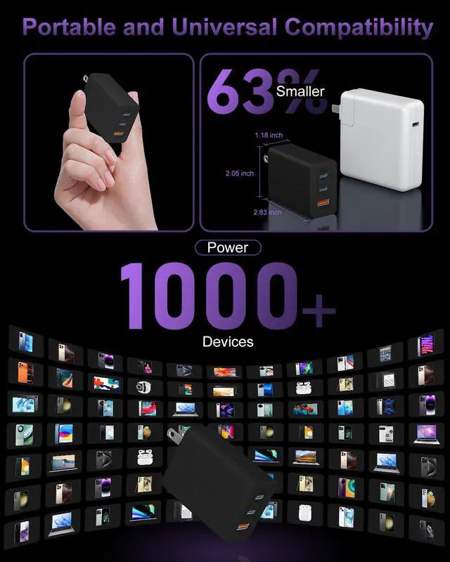 ![Alt view image 5 of 7 - USB C Super Fast Phone Charger 100W, 65W GaN Type C Charger Fast Charging Block with 10ft USB C Charging Cable for Samsung Galaxy S26 Ultra/S26/S26+,MacBook Pro/Air,iPhone/iPad Pro[2 Pack]-Black](https://c1.neweggimages.com/productimage/nb640/C6EHD2604270DX0M781.jpg)