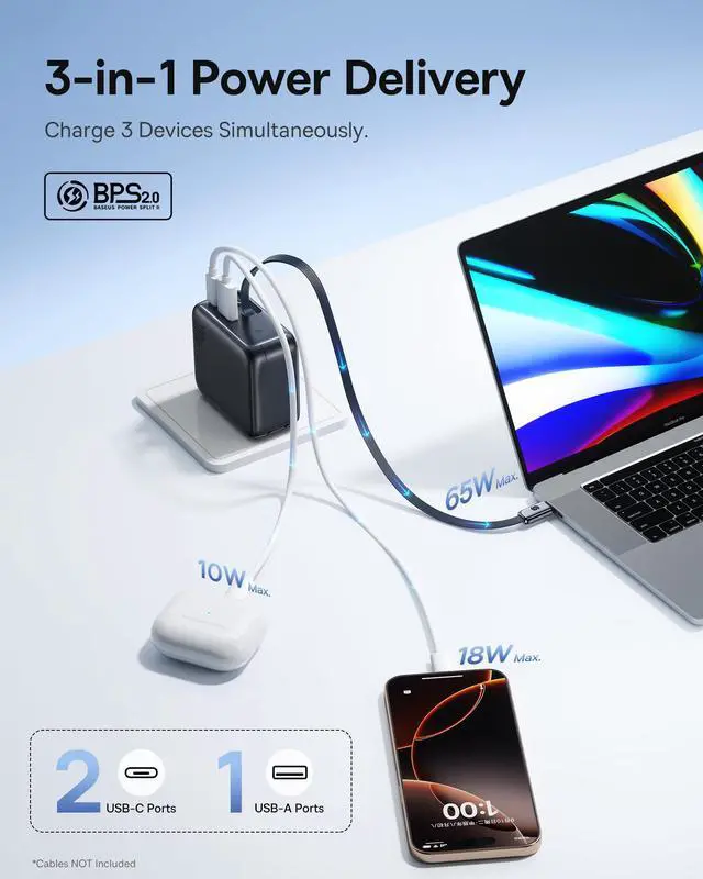 | 2 USB-C + 1 USB-A | 3 USB-C | 2 USB-C | 2USB-C + 2USB-A + 2AC | 3 USB-C |