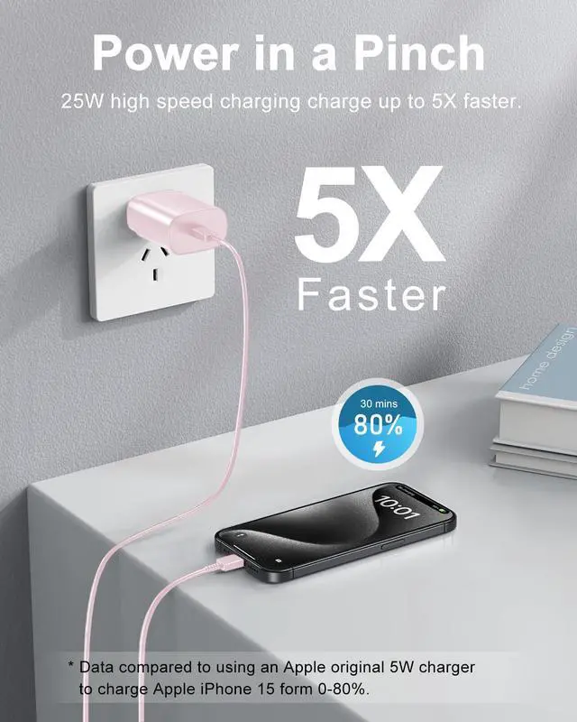Power up your new Phone to 80% in just 30 minutes - full charge in 1 hour. Our PD 3.0 25W charger saves you over 60 minutes compared to standard adapters.