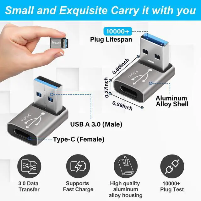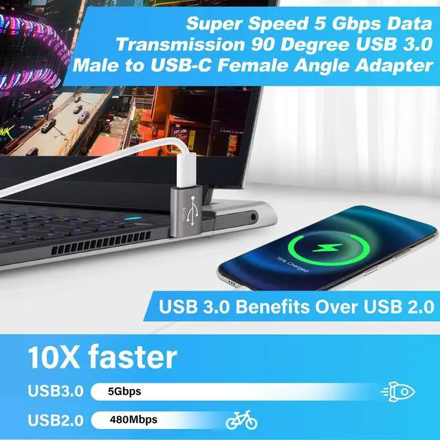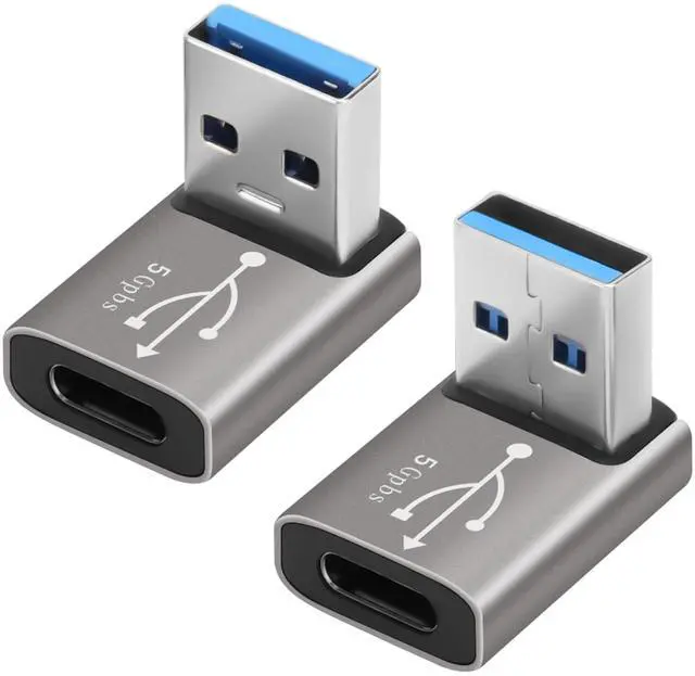 90 Degree USB to USB C Adapter 2 Pack, Up and Down Right Angle USB C Female to A Male Charger Connector Converter USB L Shape Extender, Support Charge & Data Sync for PC, Laptop, Mouse, Keyboard
