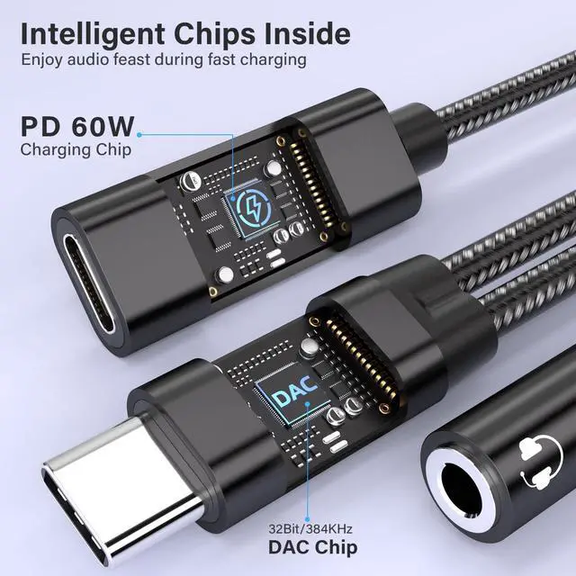 - 4 in 1 USB Type C to 3.5mm headphone jack adapter: