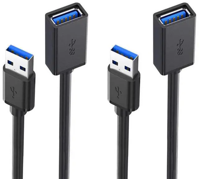 Upgrade your device connectivity with this 2-pack of premium USB 3.0 extension cables. Each cable measures 1.65 feet in length, providing the perfect balance between flexibility and functionality. These Type A male-to-female extension cables support high-speed data transfer rates, making them ideal for a wide range of applications. Whether you need to connect keyboards, mice, external hard drives, USB hubs, printers, or cameras, these cables deliver reliable performance. The versatile design ensures broad compatibility with USB devices, while the sturdy construction maintains signal integrity. Perfect for home offices, gaming setups, or professional workstations where you need that extra reach without compromising on data transfer speeds. The pack of two cables gives you added value and convenience, allowing you to set up multiple connection points or keep a spare on hand.